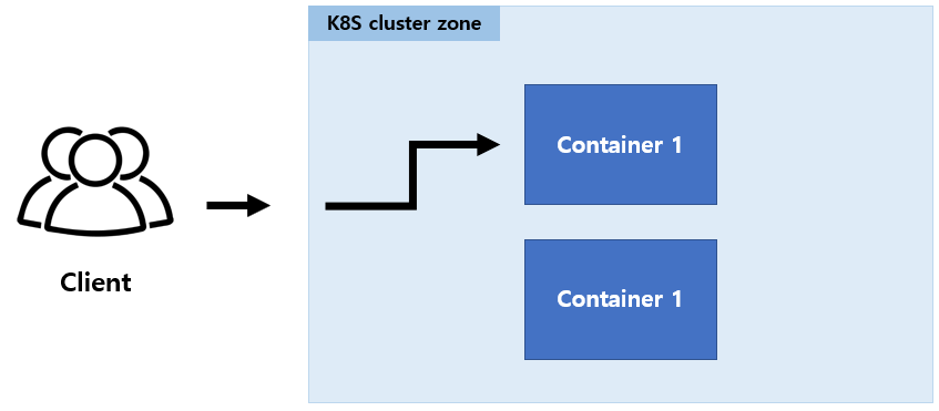 쿠버네티스에 배포된 컨테이너들은 기본적으로 쿠버네티스 클러스터 내에서 동작한다.