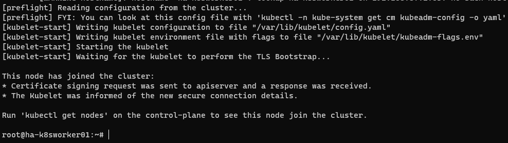 다음과 같이 명령어를 사용하게 되면 클러스터가 구축되고 명령어가 출력된다.