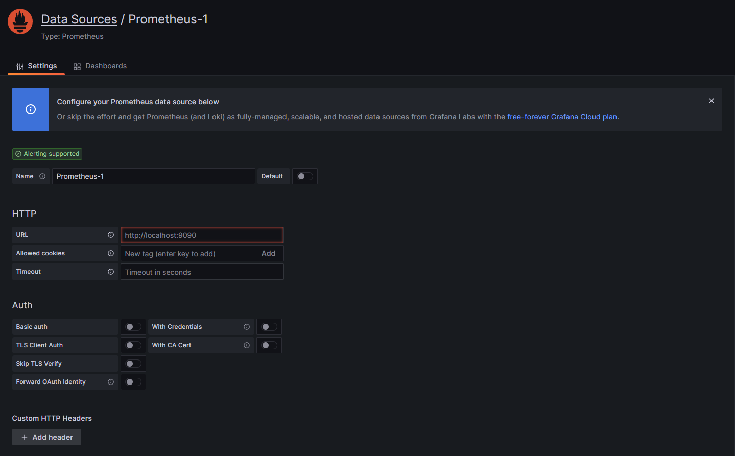 이후 Prometheus를 선택한다.