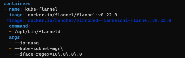 이후 kube-flannel.yml 파일을 수정한다.(--iface-regex 추가)